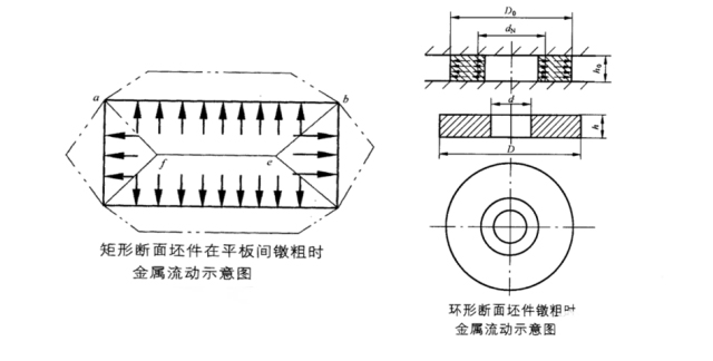 4、镦锻比:即坯料需要变形部分的长度与直径的比,比值过大,一次镦锻就会出现纵弯现象,压扁后,会出现夹层,要避免镦锻中出现这些缺陷,必须增加镦锻次数。