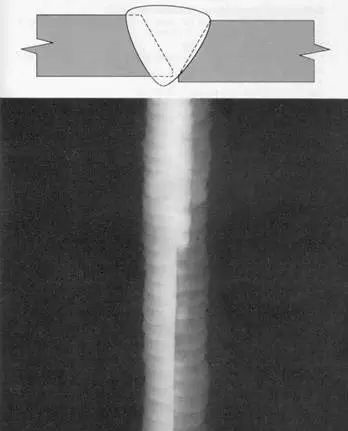 (3)未焊透有底片上处于焊缝根部的投影位置,一般在焊缝中部,因透照偏、焊偏等原因也可能偏像一侧。